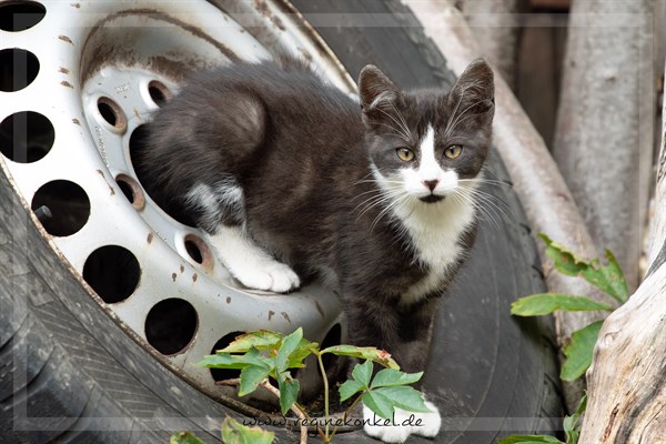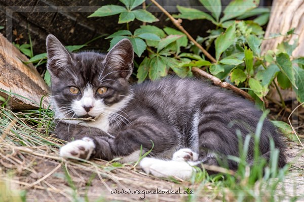 4 kleine wilde Katzenbabys, die laaangsam zutraulich werden.